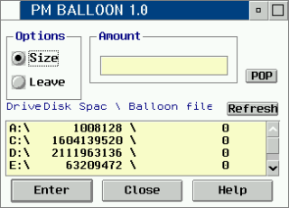 Balloon è un programma che crea un file di dimensione variabile nella radice principale del disco specificato per creare scenari dove lo spazio disco diventa critico. Versione VIO e PM. Freeware.