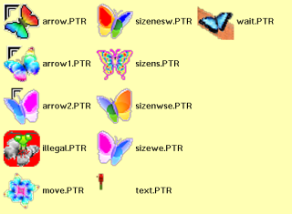 This is another attempt at making X-like pointers. I saw a few versions on the net, but they were not what I wanted, so I made my own. These icons are based on the X-windows pointers under the Motif window magager. When used together with NPSWPS Enhancer and/or FeelX, they make a more realistic X look and feel. Some pointers like the ILLEGAL.PTR I had to make up, 'cause I 'aint seen no "illegal" pointer on the X yet.