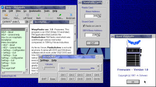 WarpRadio is a PM program to control the RadioActive FM Radio card. WarpRadio supports scanning, has 30 station table, 10 station memory and controls volume through radio card or SB16 line-in connector.